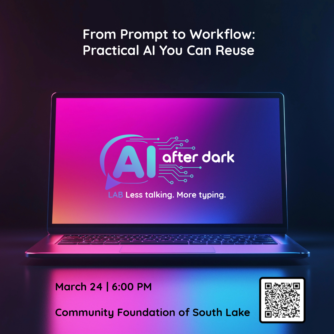 - March 24, 2026: AI After Dark LAB: From Prompt to Workflow Practical AI You Can Reuse Register