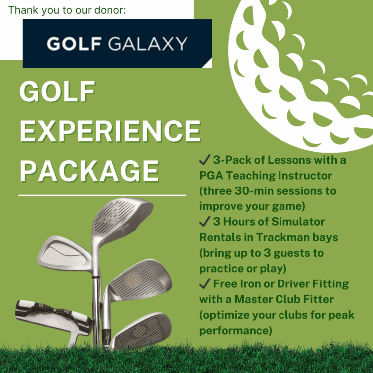 - Golf Experience Package: Lessons, simulator time, & club fitting (Value: $440 | Starting Bid: $25)